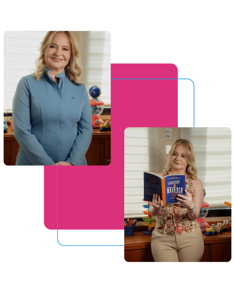 Com mais de 35 anos de experiência, Katia Badin é referência em fonoaudiologia e transtornos de linguagem, atuando no desenvolvimento da fala e da comunicação.